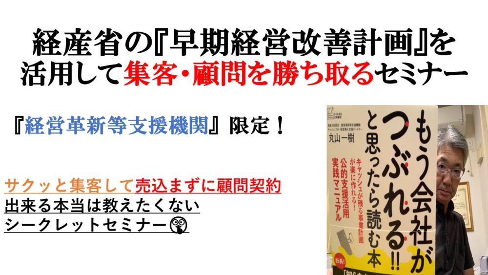- 認定支援機関限定! 早期経営改善計画を成約するセミナー