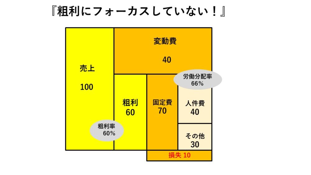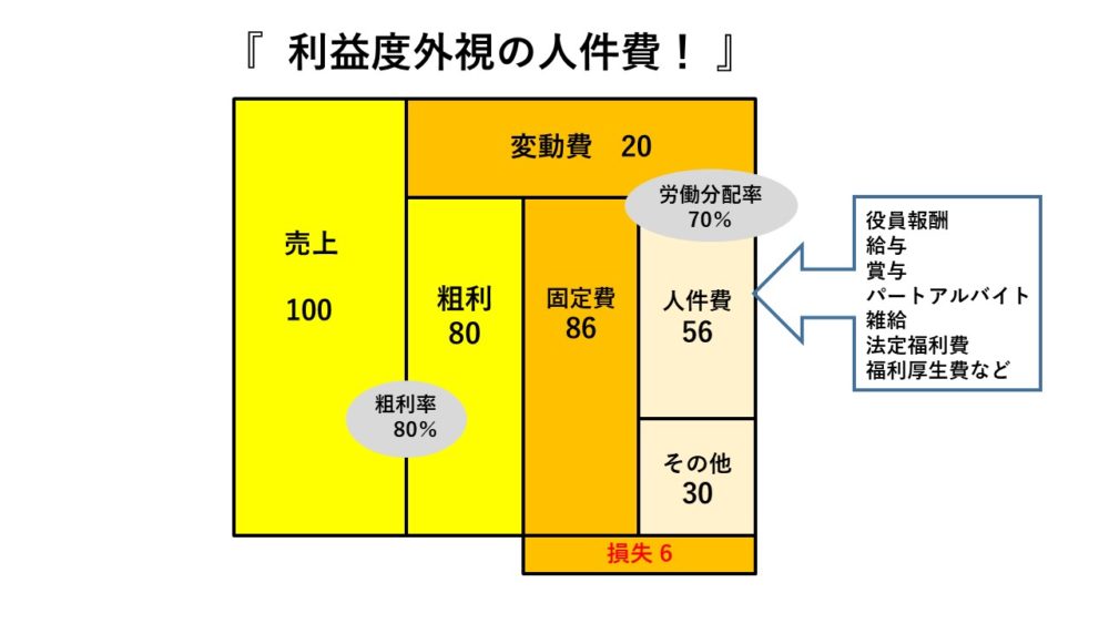 仮に人件費56が適正ならば、粗利をもっと稼ぐ