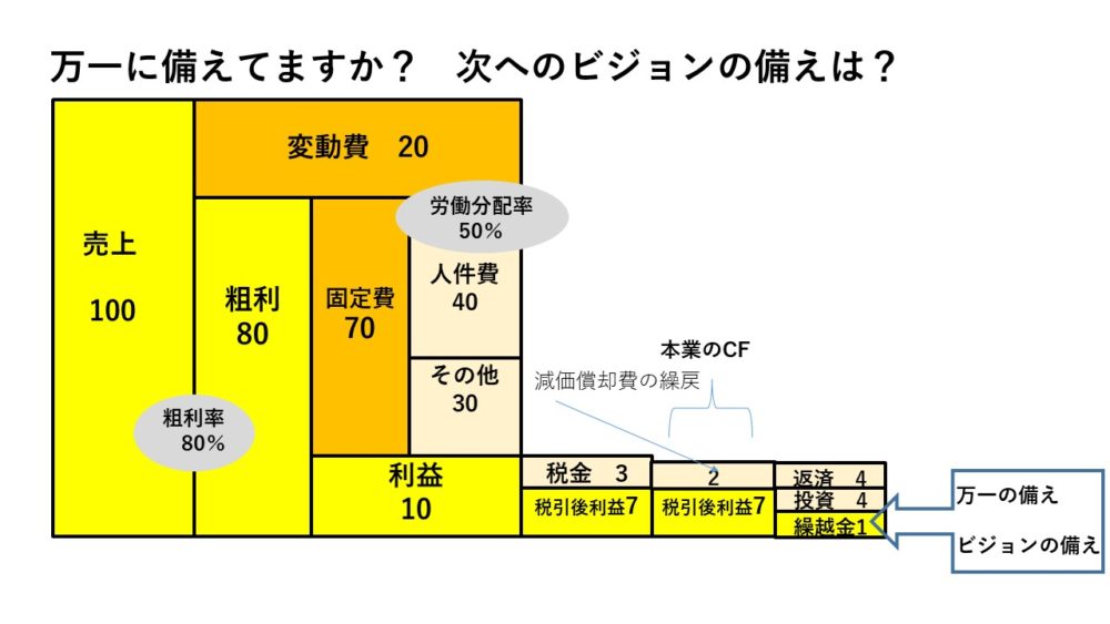 上げて、粗利を稼ぎ、固定費を支払った後に利益