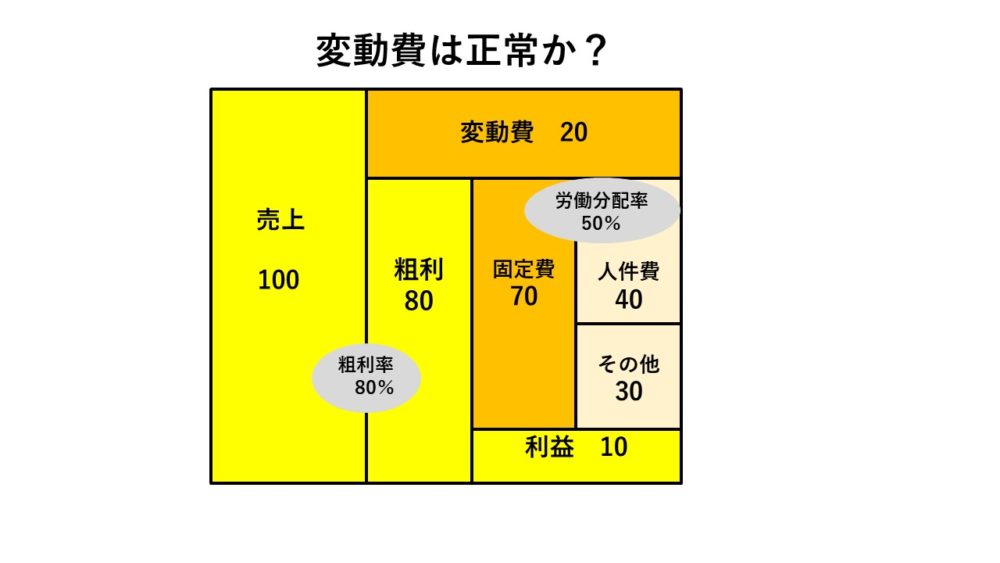 図では変動費が20で粗利が80(80%)です。