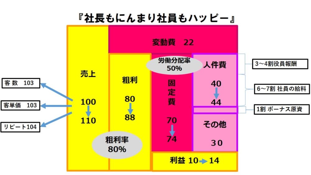 固定費も増えるので、人件費を上げる前の利益