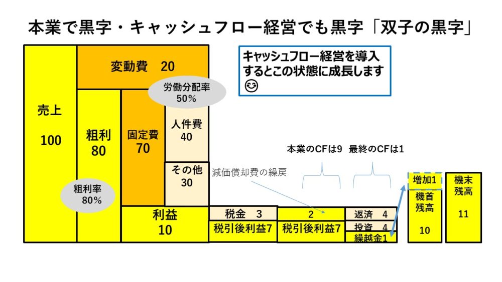 3.本業で黒字、キャッシュフロー経営でも黒字