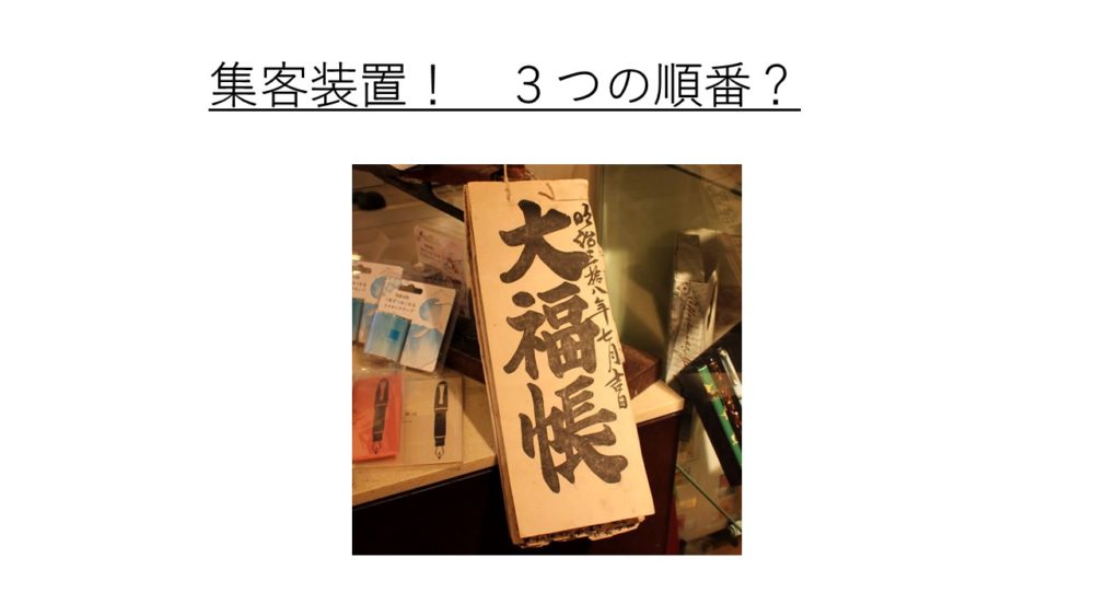 「 集客装置! 3つの順番? 」